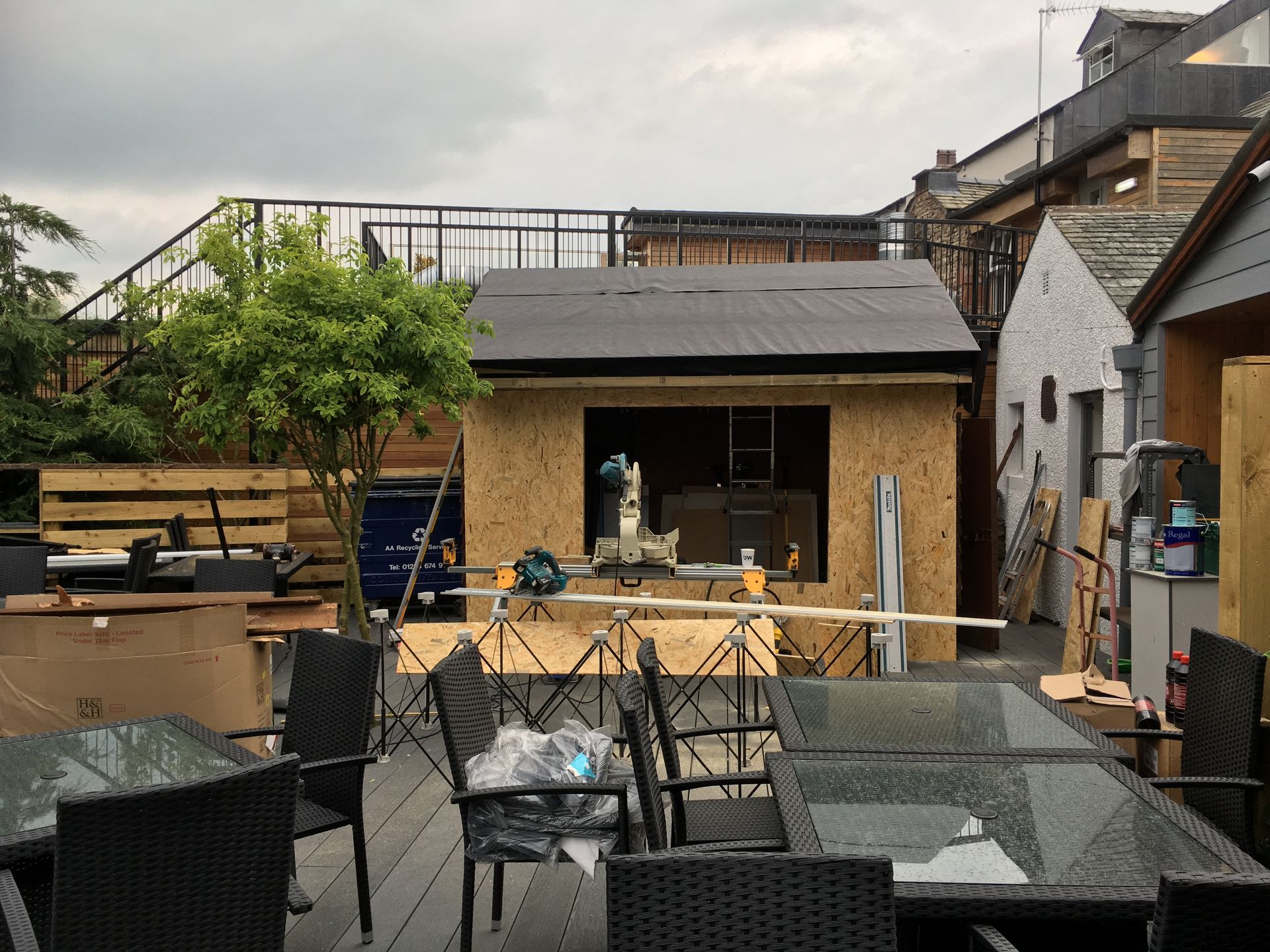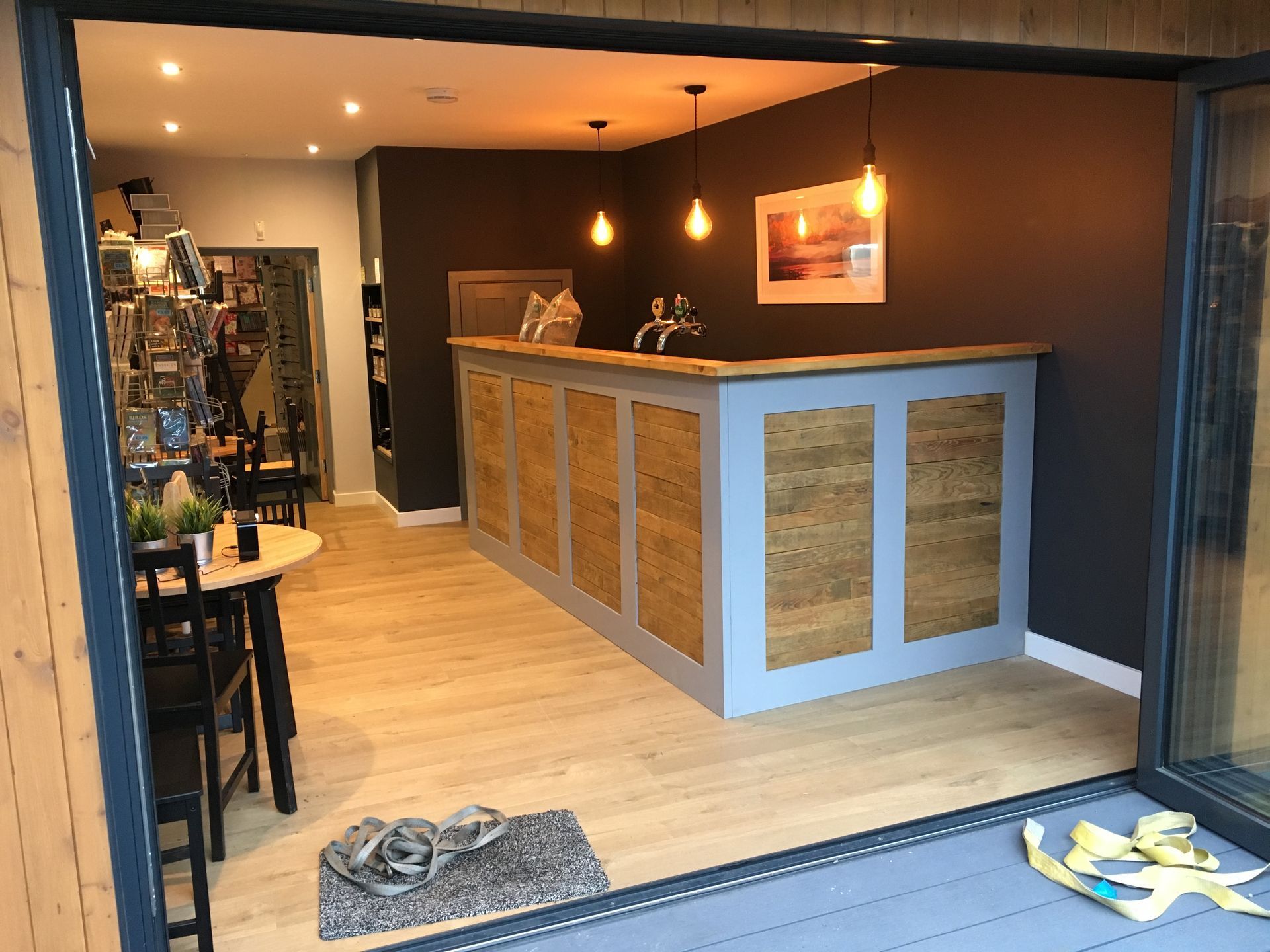 The original secret garden bar build using reclaimed pine shelves from the shop store room that became the bar area
